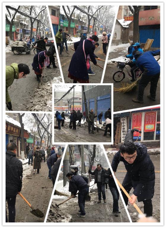 财政铁军先将南大街机关大院门前道路清扫干净,又迅速转战我局党建联系点柏树林社区所辖东木头市帮助清扫路上积雪。